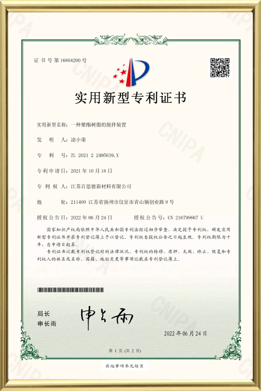 Sinds de oprichting in 1998 heeft Jiangsu Besd New Materials Co., Ltd gericht op het onderzoek en de ontwikkeling en productie van polyesterharsen en heeft ze rijke industriële ervaring verzameld. Het bedrijf heeft geavanceerde productietechnologie en een compleet servicesysteem na Sales om de betrouwbaarheid van zijn producten in kwaliteit en prestaties te waarborgen. Deze achtergrond verbetert niet alleen de klantvertrouwen, maar biedt klanten ook een meer geruststellende gebruikservaring.